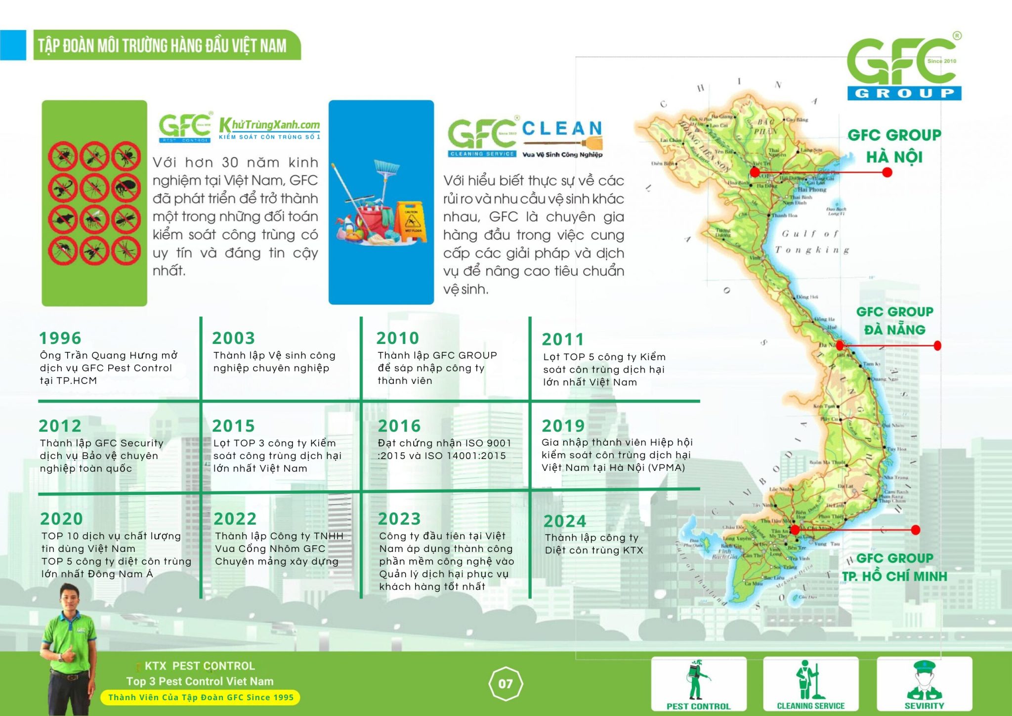 Diệt côn trùng KTX là công ty thành viên của Công ty TNHH Khử Trùng Xanh (GFC) thuộc Tập đoàn GFC Việt Nam, một trong 3 đơn vị kiểm soát dịch hại lớn nhất tại Việt Nam. Với hơn 28 năm kinh nghiệm, KTX tự hào sở hữu mạng lưới chi nhánh phủ khắp 63 tỉnh thành và các văn phòng trọng điểm tại Hà Nội, Đà Nẵng, TP.HCM và Cần Thơ. Công ty cung cấp dịch vụ kiểm soát toàn diện cho các loại côn trùng và dịch hại như muỗi, ruồi, kiến, gián, mối, mọt, chuột,...
